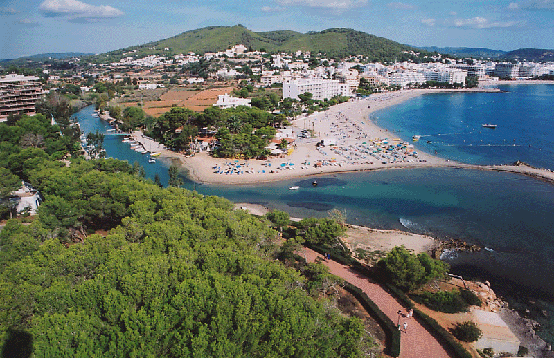 SANTA EULALIA LIEGT IN EINER SCHÖNEN BUCHT MIT VORGELAGERTEM WEISSEN SANDSTARND UND EINER BEEINDRUCKENDEN PROMENADE, WELCHE GANZ MIT GRANIT ARTIGEN STEINPLATTEN BELEGT IST. SPRINGBRUNNEN UND VIELE PALMEN RUNDEN DAS BILD AB. ES GIBT VIELE KLEINE CAFE´S UND RESTAURANTS MIT GÜNSTIGEN PREISEN.