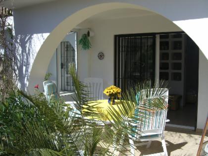 Hier noch einmal der Blick über den Pool und auf den Eingang des Appartements..... man sieht die Venus!